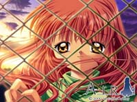 美凪の小さな友人であるが,住んでいる場所等の素性は不明。美凪といつも廃線となった駅舎の前でシャボン玉をやったりして遊んでいる。好物はハンバーグ。何故か往人に敵意を燃やし,姿を見ると蹴りを入れる等攻撃をしかけてくるが,返り討ちに会うことも多い。 美凪トゥルー・エンドにおける網越しの別れのシーンは泣けますね。 |