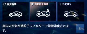 | 空気循環 | 自動内気循環 | 外気導入 | ||||||||||||||||||||||||||||||||||||||||||||||||||||||||||