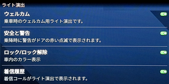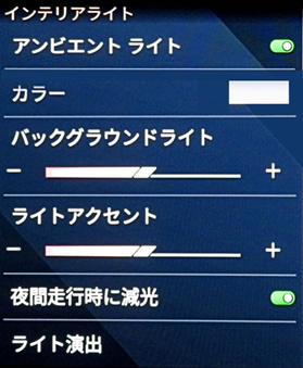 | 運転席の明るさ | ライト演出 | |||||||||||||||||||||||||