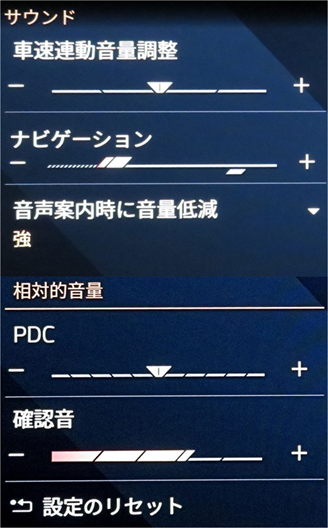 | 音声案内時に音量低減 | 弱・中・強 | ||||||||||||||||||||